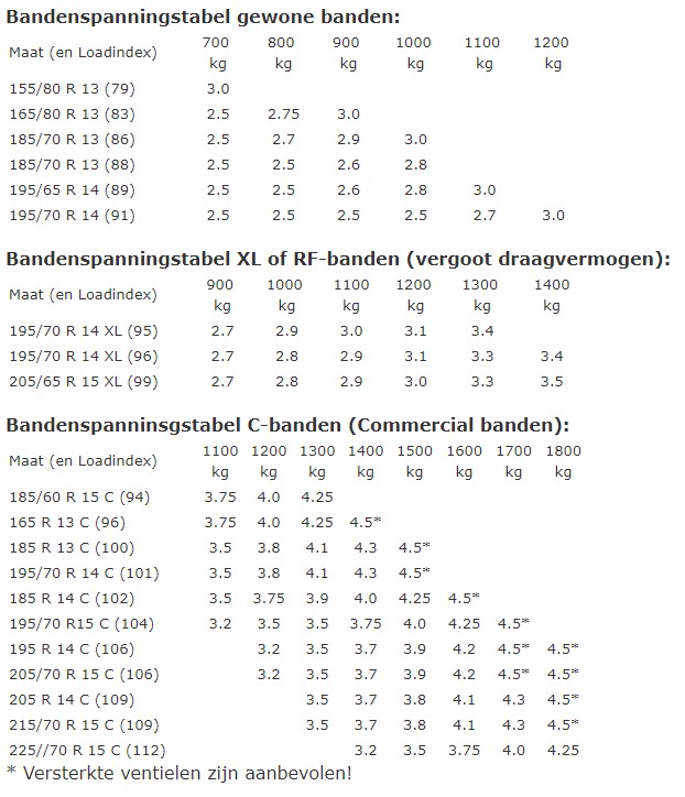 Check onderaan deze pagina welke bandenspanning bij jouw camperbanden hoort.
